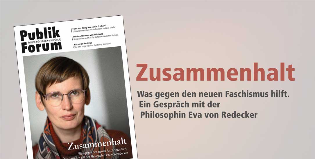 Publik-Forum erscheint alle 14 Tage und ist eine unabhängige Zeitschrift. Sie beschreibt und kommentiert die Hintergründe wichtiger Entwicklungen in Politik, Gesellschaft, Religion, Kirchen, Leben und Kultur auf der Grundlage christlicher Werte.